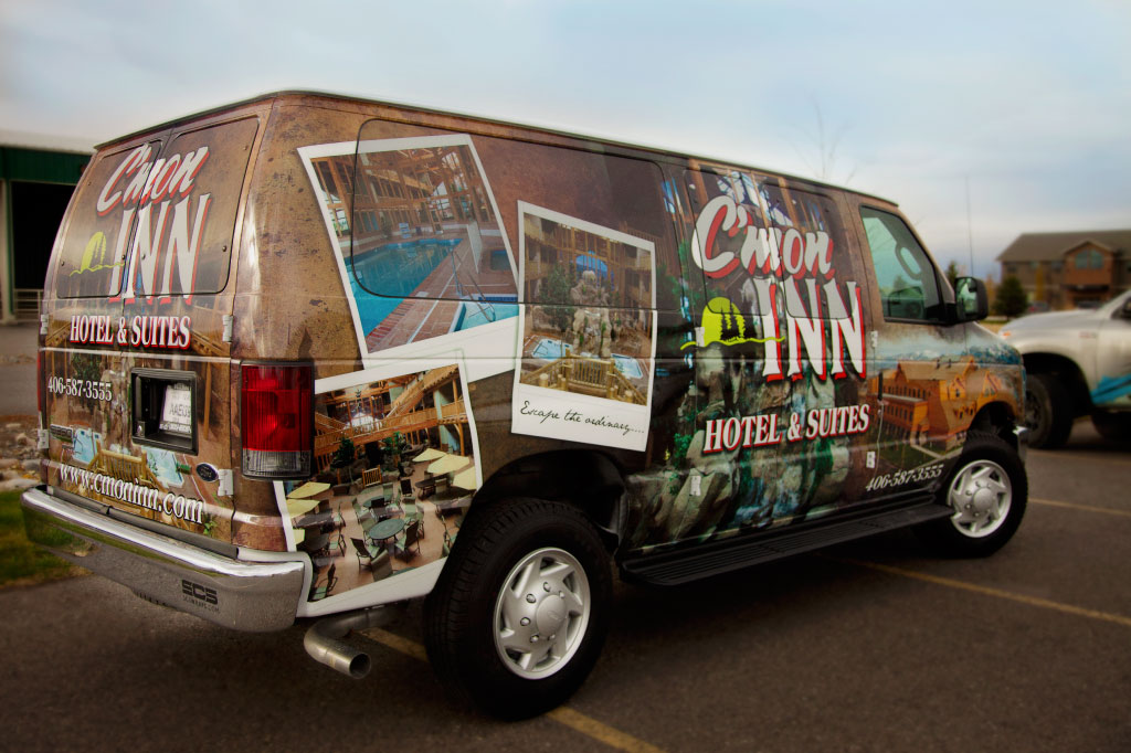 The C’Mon Inn of Bozeman, MT inquired with SCS Wraps recently about fully wrapping their new shuttle service van. The idea was to focus on the great location in Bozeman and all that it has to offer for its guests. SCS Wraps worked closely with their team to integrate actual photos of the property so that people could get a solid idea of the Inn. Overall, the end result turned out phenomenal and their team could not be any happier. Many thanks to the C’Mon Inn for allowing us the opportunity to work together. We look forward to building this relationship in the future.